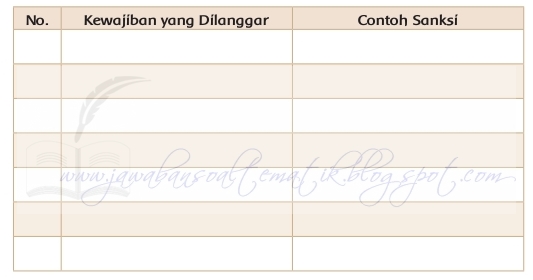 2. Sebutkan contoh sanksi bagi orang yang tidak melaksanakan kewajiban. Tuliskan pada tabel berikut